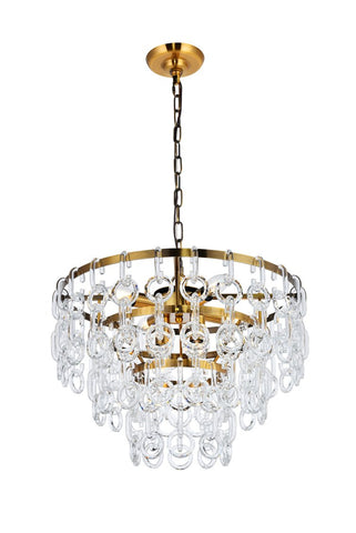 The Eden pendant lamp in a light antique brass finish ensures a relaxed luxury that is both ritzy and casual all at once. 6 lights playfully shine through the tiered clear crystal ringlet shade, exuding timeless elegance that your guests will lovingly adore. A perfect addition to any room, this pendant will surely add style to your home.